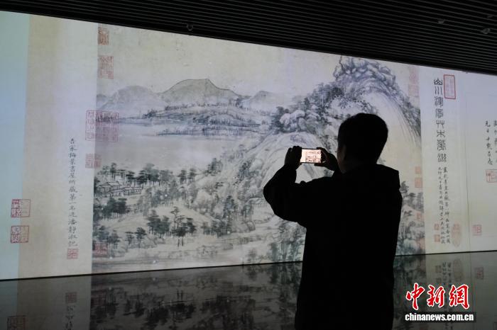 11月11日,不雅寡正在《富秋山居图》数字互动体会名目前摄影。中新社记者 曹丹 摄
